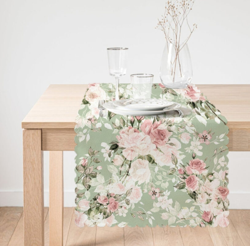 Velvet Textiel Tafelloper – Pastel Roze Bloemen (alle afmetingen)