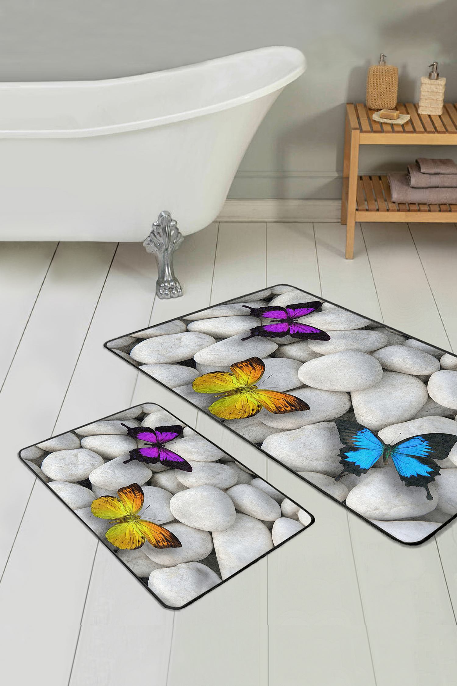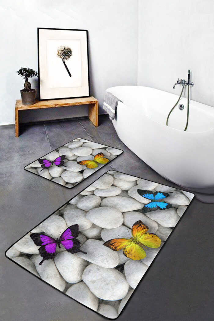 Badmat antislip 2 stuk set – 60×100 & 50×60 – Stenen – Wc mat