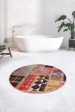 Badmat antislip rond Ø80 cm – Toiletmat – Patchwork patroon