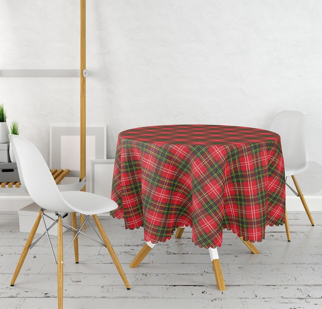 Velvet Rond Tafelkleed Ø140cm – Kerst rode ruit
