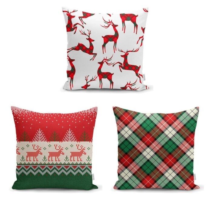 Sierkussen set van 3 – Kerst rendieren & Ruitjespatroon
