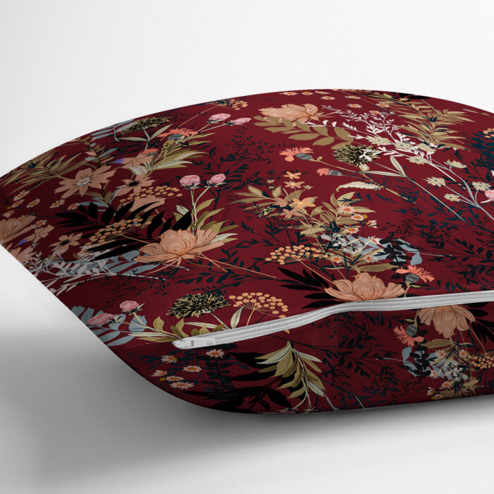 Sierkussen Velvet – Bloemen op bordeaux – (alle afmetingen)