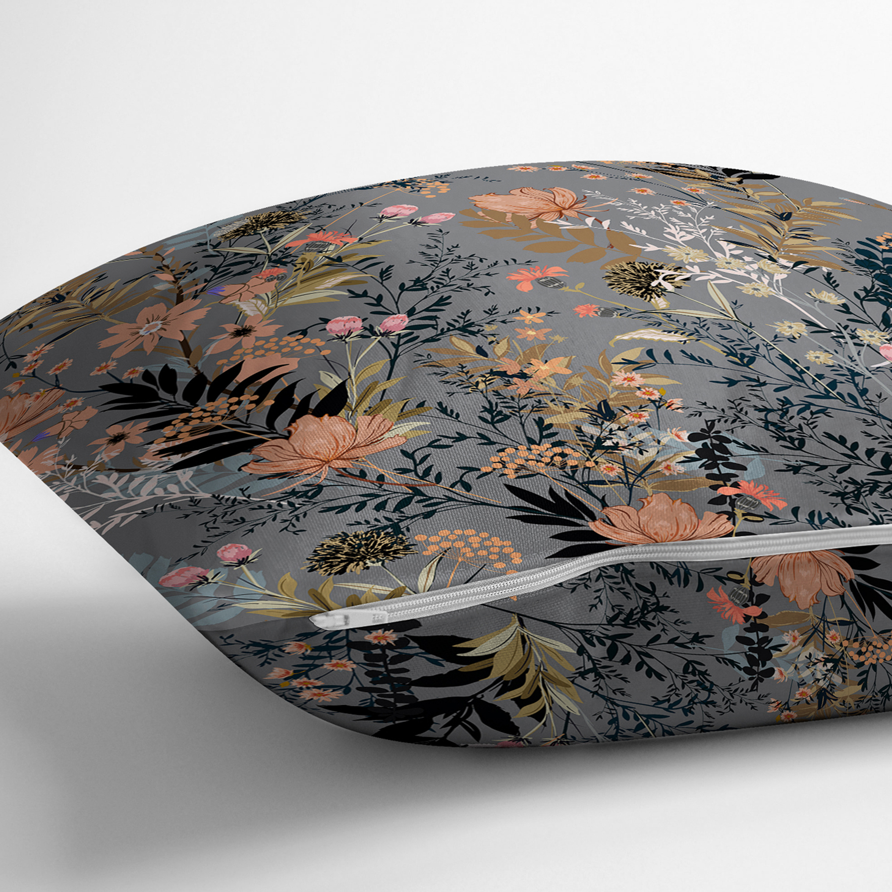 Sierkussen Velvet – Inclusief binnenkussen – Bloemen op grijs