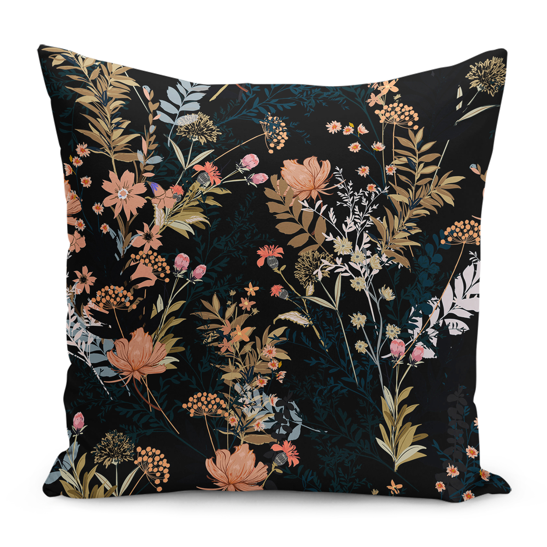Sierkussen Velvet – Bloemen op zwart – (alle afmetingen)