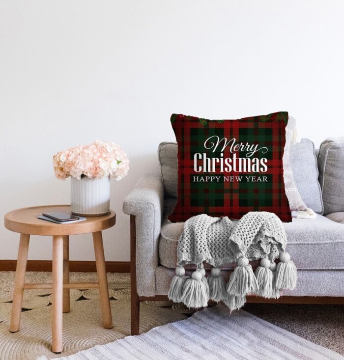 Sierkussen velvet – Merry Christmas op Ruitjespatroon