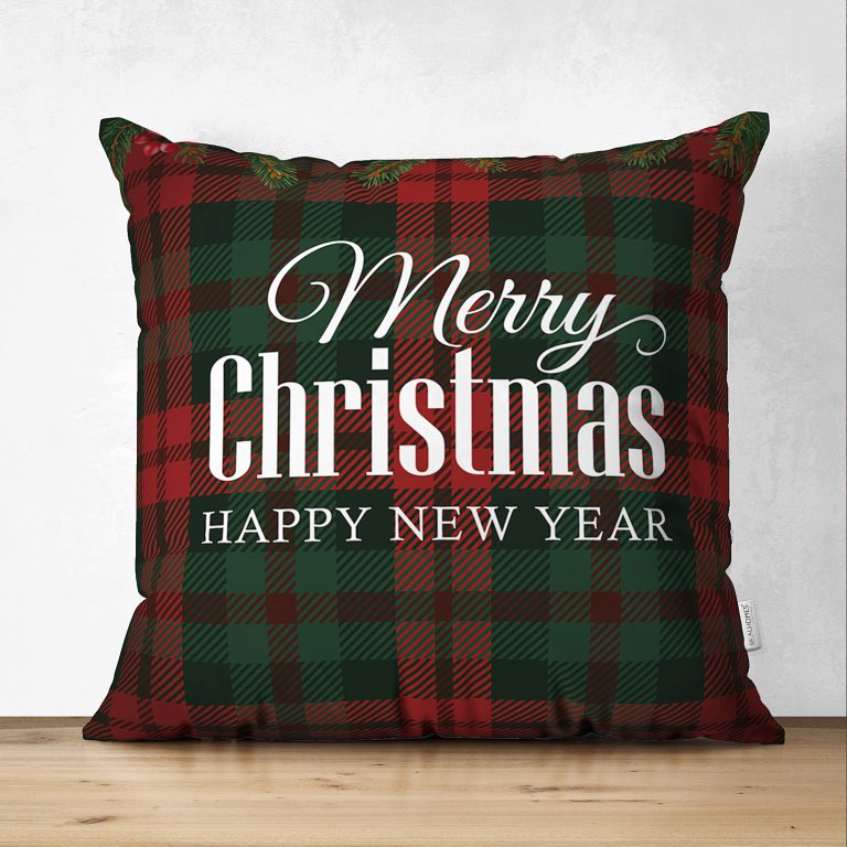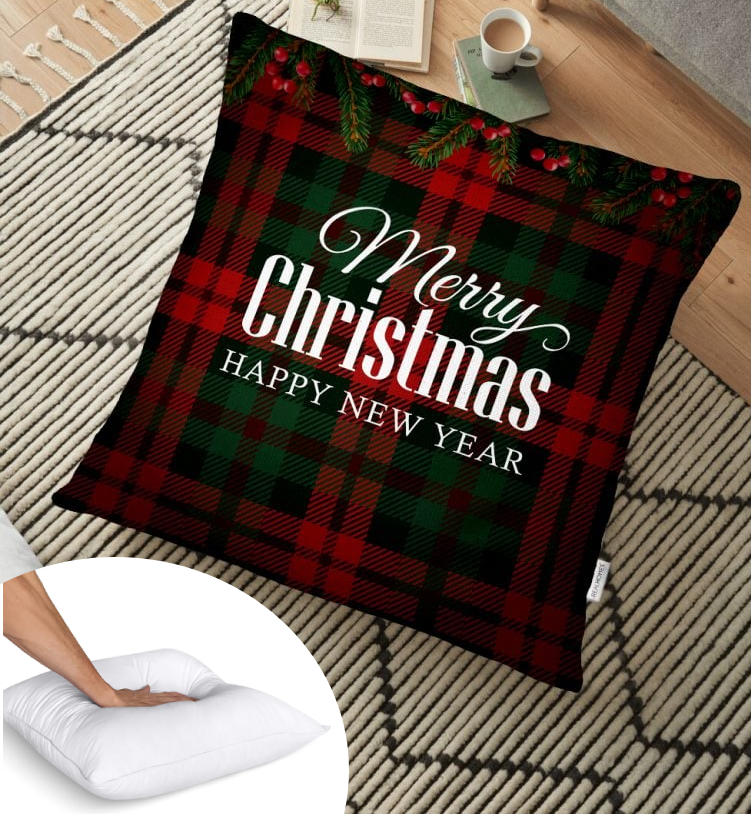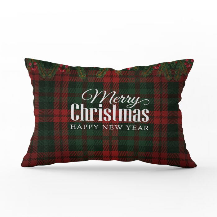 Sierkussen velvet – Merry Christmas op Ruitjespatroon (alle afmetingen)