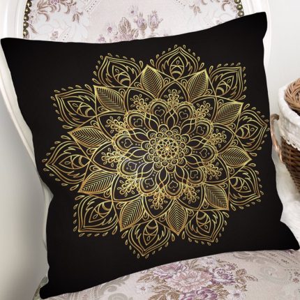 Sierkussen velvet – Gold mandala op zwart (alle afmetingen)