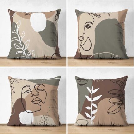 Sierkussen set van 4 – Modern vrouwengezicht – (alle afmetingen)