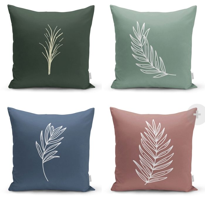 Sierkussen set van 4 – 45×45 – Velvet – Onedraw bladeren
