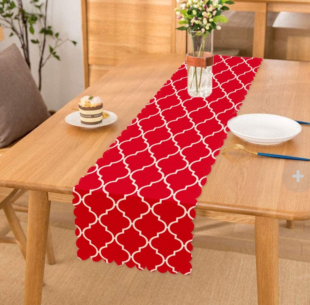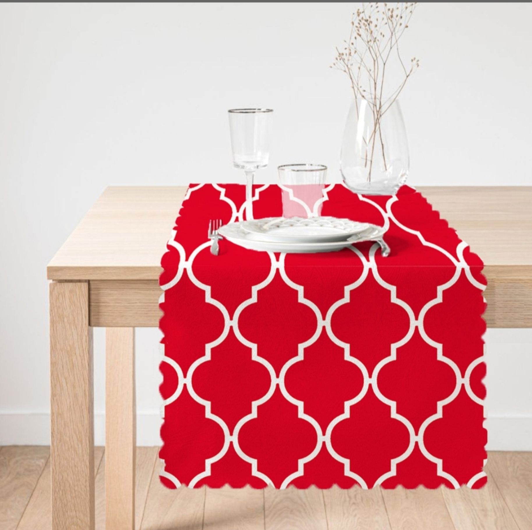 Velvet Textiel Tafelloper – Rode ogea patroon (alle afmetingen)